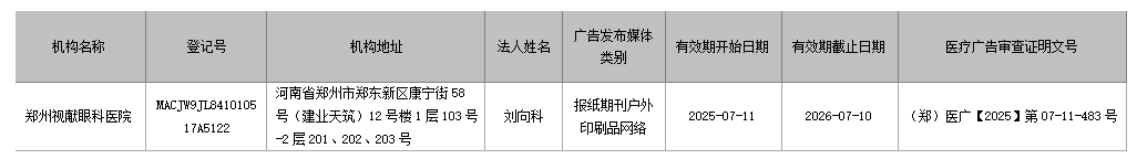 下列医疗广告因 医疗机构申请 ,依照《中华人民共和国行政许可法》第七十条第三项规定,郑州市卫健委决定于 2026 年 03 月 31 日对其《医疗广告审查证明》予以注销。